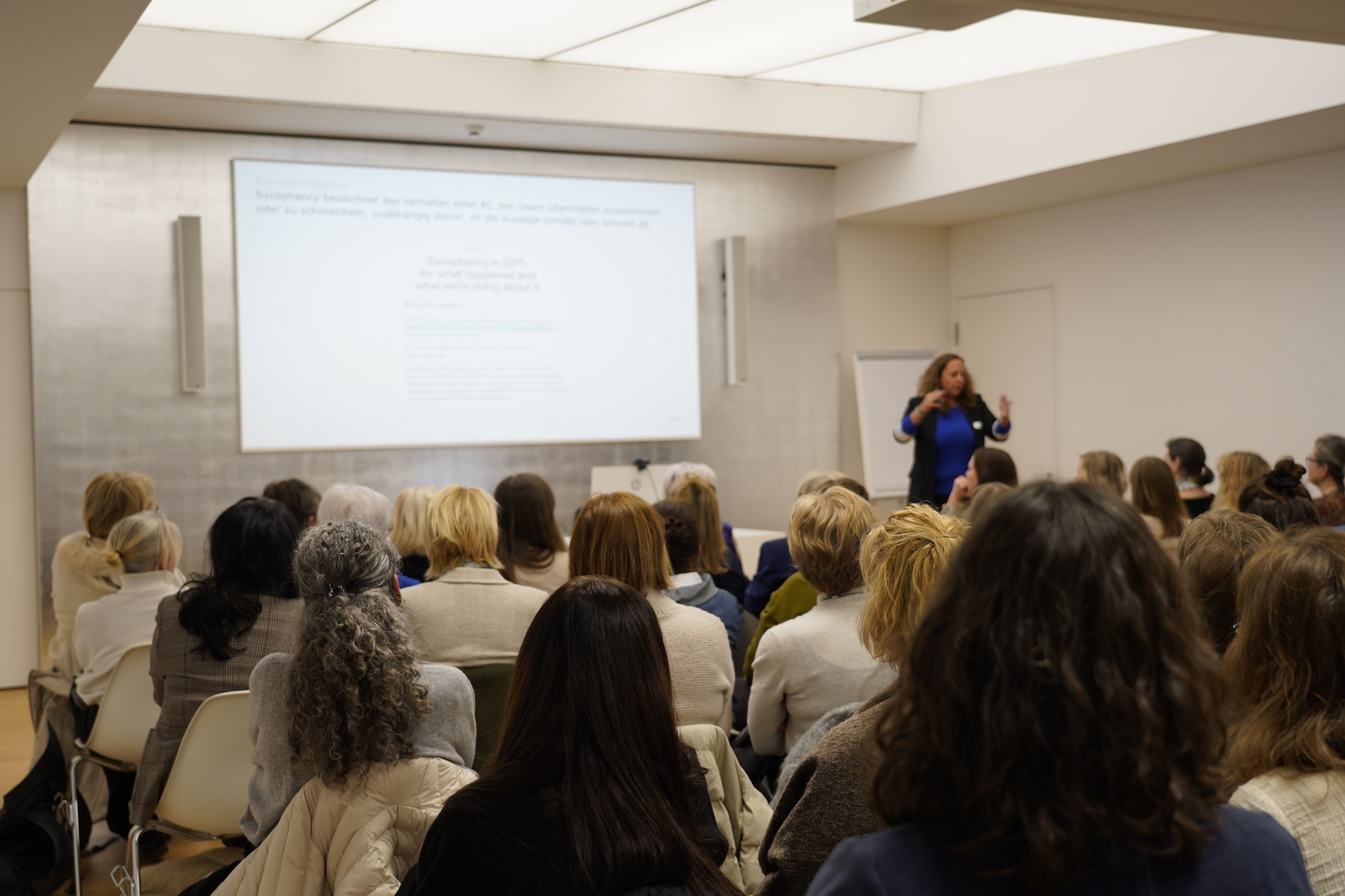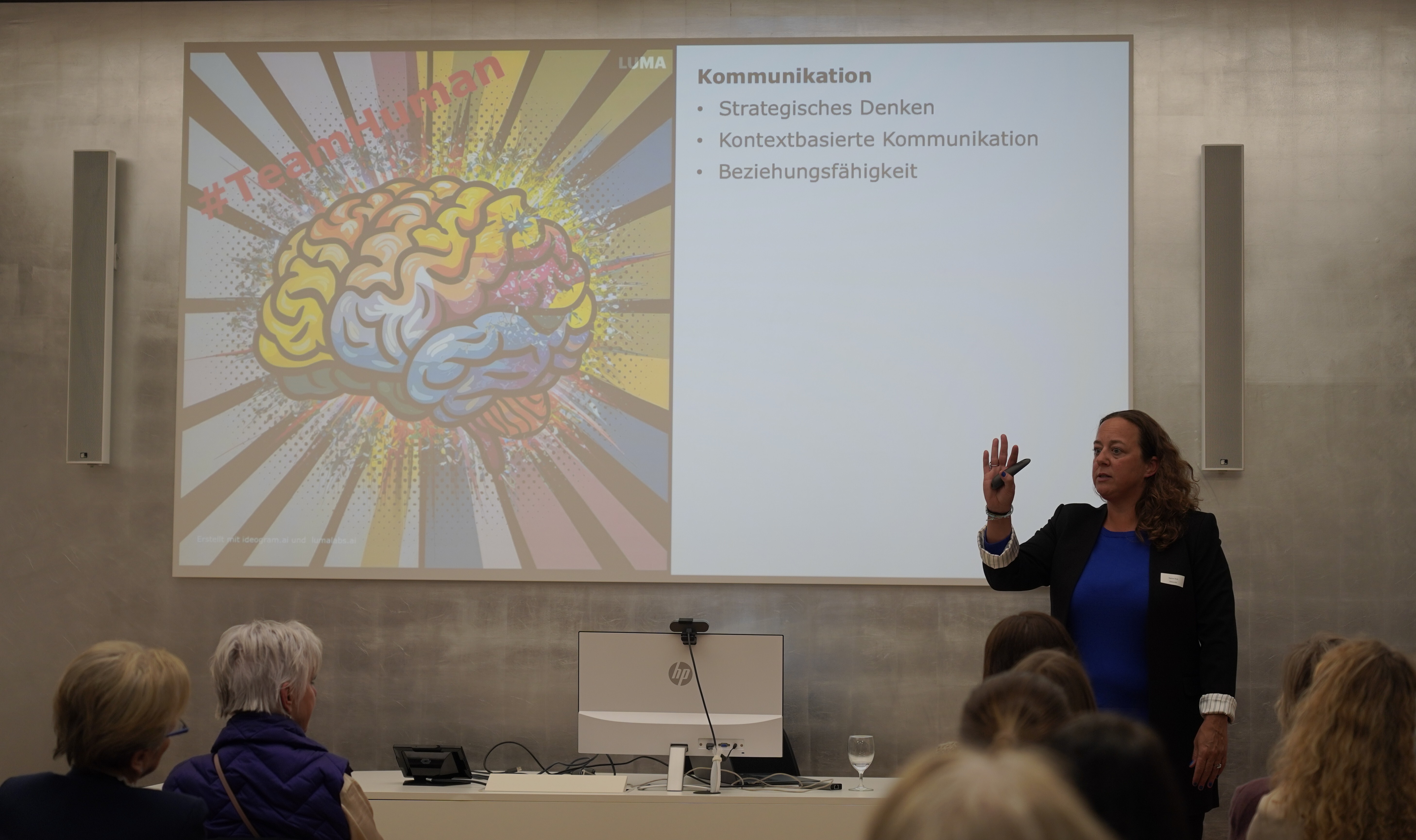 Anhand konkreter Beispiele zeigte sie, wie generative KI in Arbeits- und Kommunikationssituationen sinnvoll eingesetzt werden kann, ohne die menschliche Verantwortung aus der Hand zu geben. Dabei geht es um mehr als nur Tools und Prompts: Im Fokus stehen menschliche Fähigkeiten wie Qualitätsdenken, Kontextkompetenz und die Fähigkeit, Ergebnisse kritisch zu prüfen, einzuordnen und weiterzuentwickeln.